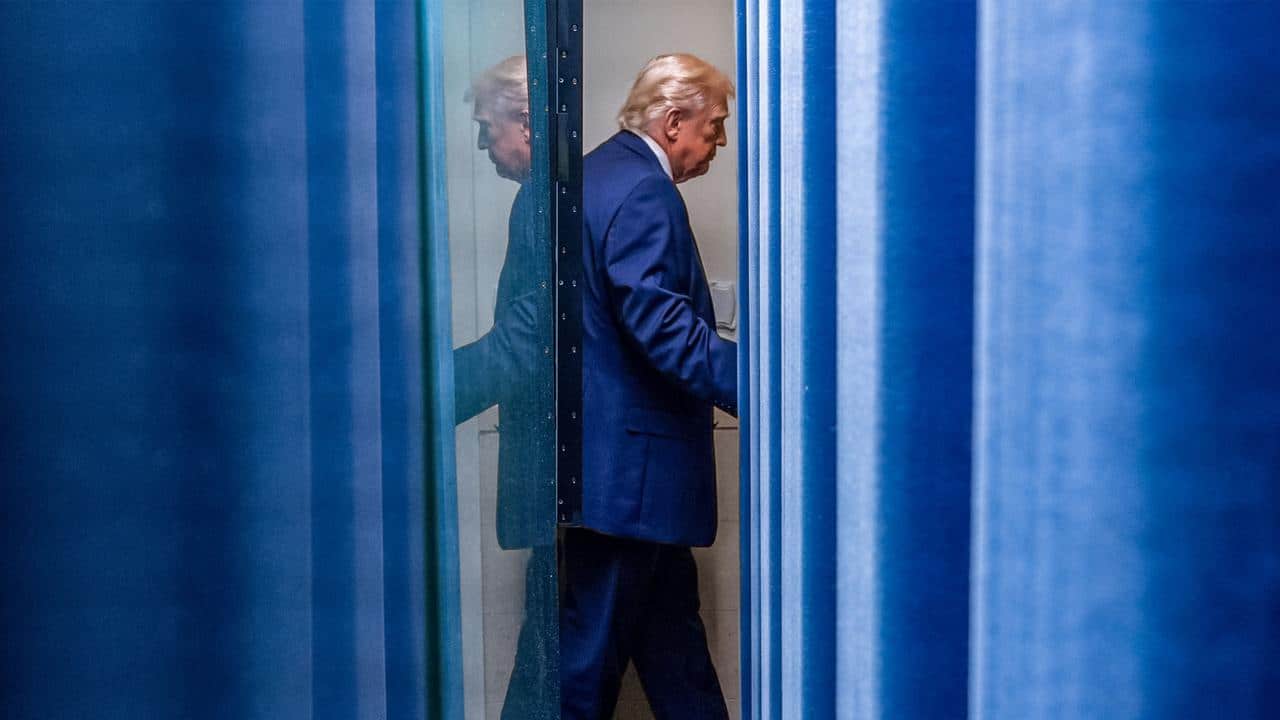 Le président américain Donald Trump quitte une conférence de presse à la Maison Blanche.