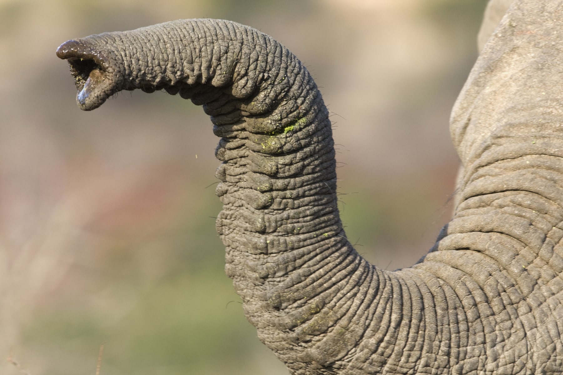 Moustache spéciale. Nous ne parlons évidemment pas des moustaches à la Groucho Marx, mais des quelque 1 000 poils qui recouvrent le tronc, et qui ont beaucoup de points communs avec ceux des chats : contrairement aux animaux comme les souris et les rats, dont les moustaches sont raides et uniformes, les éléphants et les félins ont des moustaches raides à la base mais qui deviennent progressivement plus douces vers la pointe. Ce dégradé a plusieurs objectifs : il garantit, par exemple, que les moustaches ne se cassent pas lorsqu’elles frottent contre quelque chose, mais se plient au niveau de leur pointe sans être endommagées.