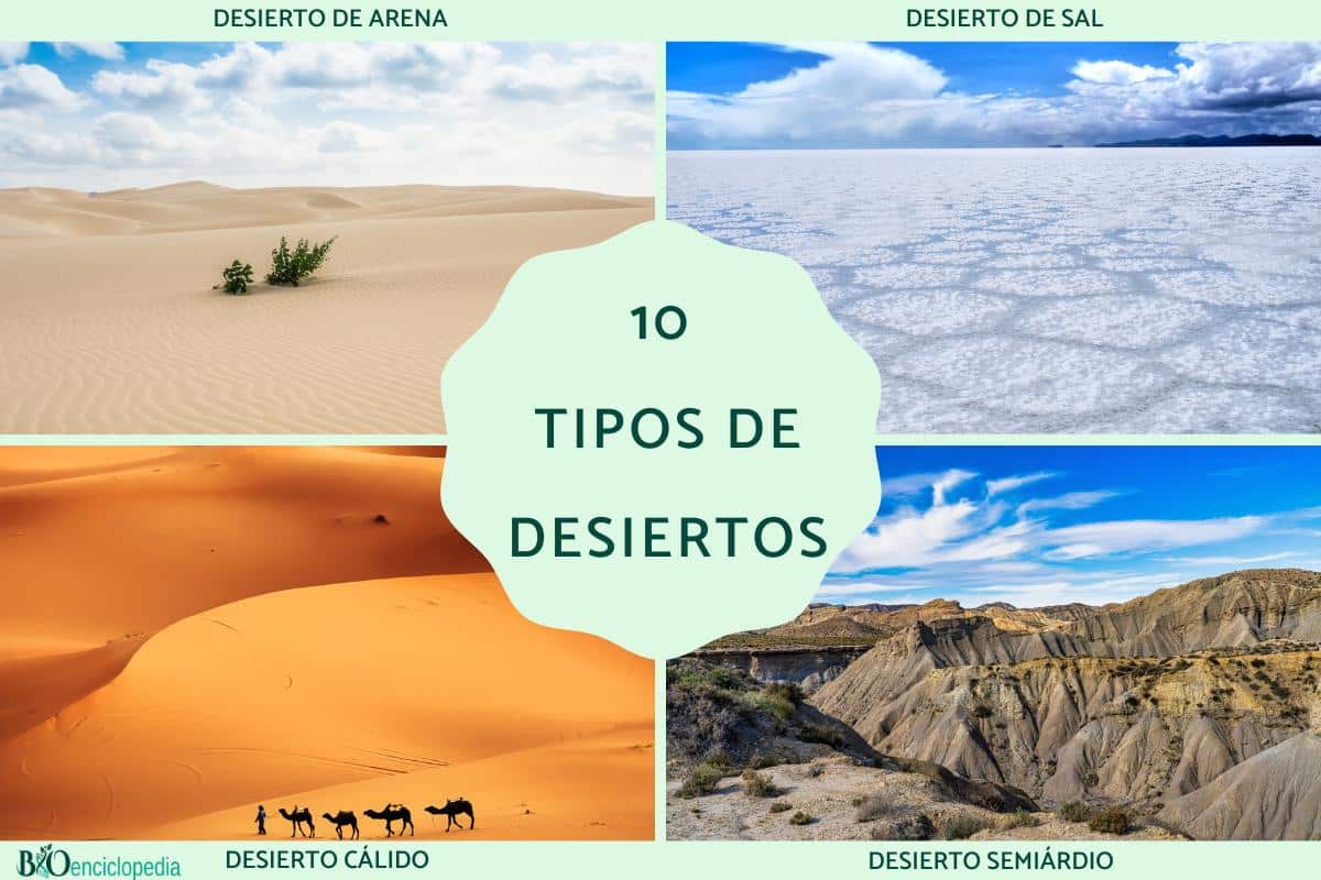 Les déserts sont des biomes caractérisés par leur grande aridité en raison de l’érosion et par leur faible biodiversité. Les types de déserts sont de sable, de roche, de sel, polaires, froids, chauds, côtiers, hyperarides, arides et semi-arides.